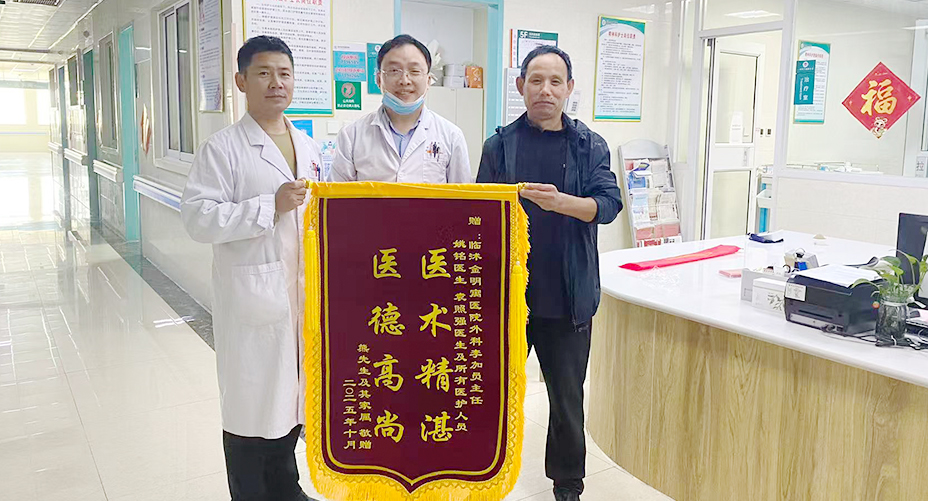 【概要描述】近日,金明寓醫(yī)院外科辦公室內(nèi)暖意融融,一位患者將一面繡有“醫(yī)術(shù)精湛,醫(yī)德高尚”的鮮紅錦旗鄭重地送到科室醫(yī)護(hù)人員手中,以此表達(dá)對(duì)外科團(tuán)隊(duì)為其解除長(zhǎng)期病痛的感激之情。這面錦旗不僅承載著患者的深切謝意,更彰顯了醫(yī)院外科在診療服務(wù)中的專(zhuān)業(yè)實(shí)力與人文關(guān)懷。